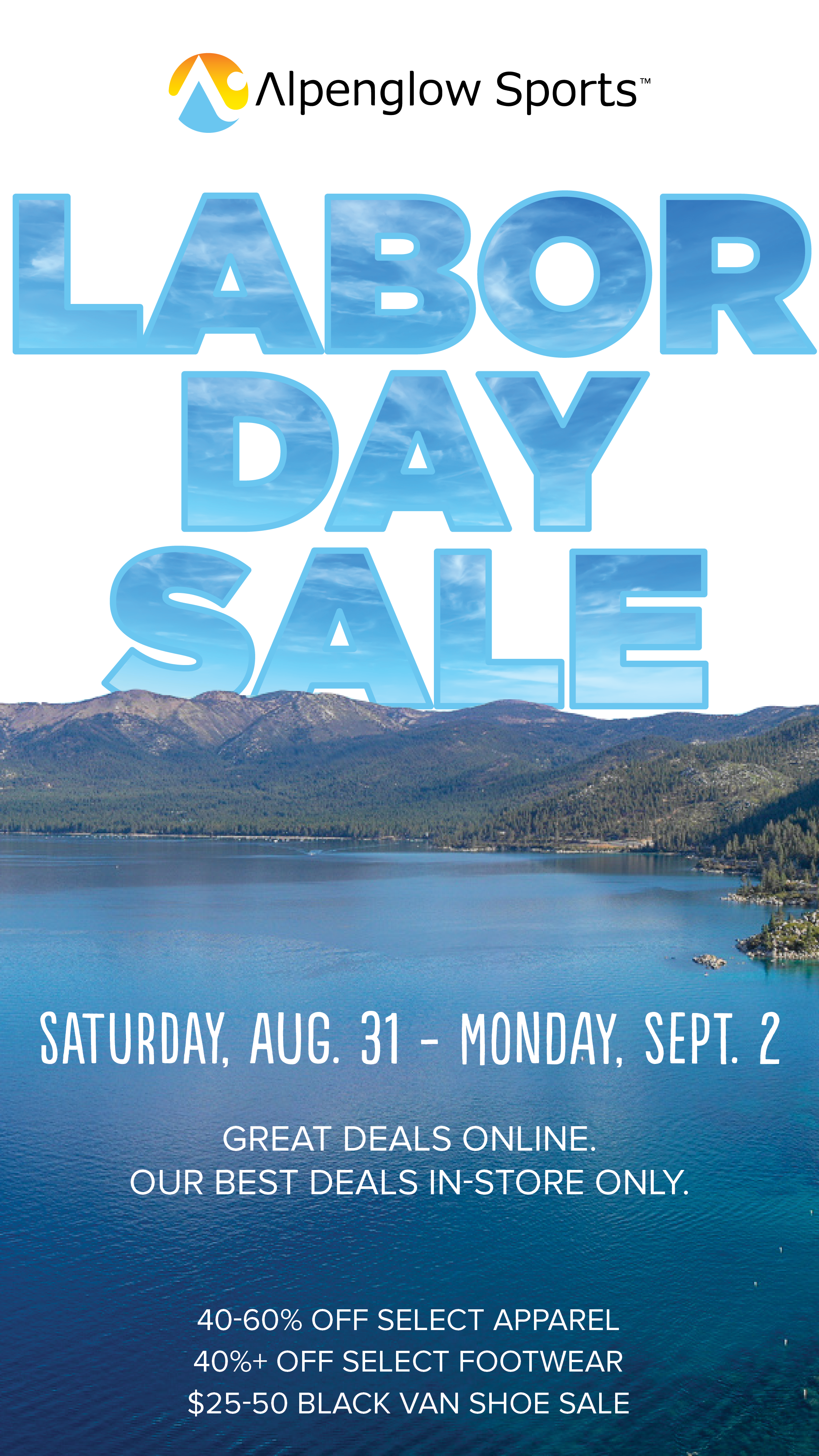 Join us in-store and online for our Labor Day Sale! See you at Alpenglow Sports!