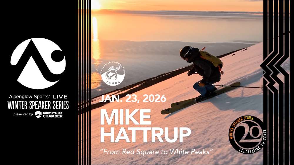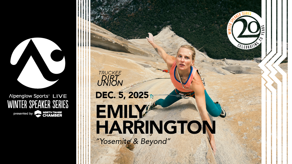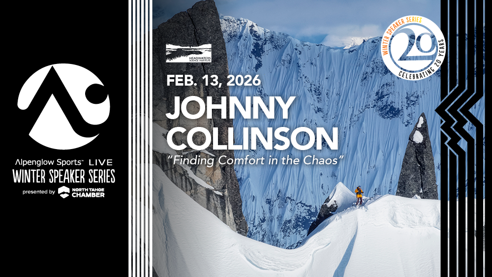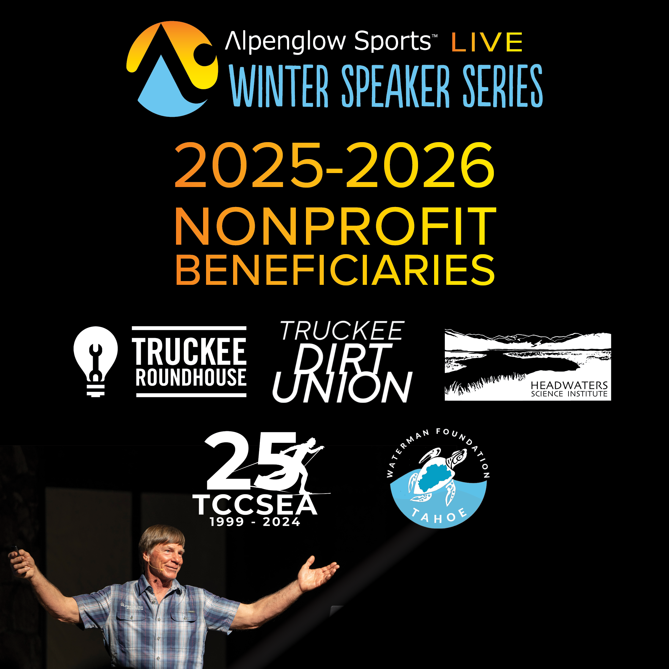 The Alpenglow Sports Winter Speaker Series presented by North Tahoe Chamber is the largest free community speaker series in the country. We host the biggest names in the outdoor industry who share stories about outdoor adventure. We have two simple goals: 1) to inspire and motivate mountain athletes to pursue their outdoor dreams and 2) to raise funds for nonprofit organizations making a tangible difference in the North Lake Tahoe and Truckee community.